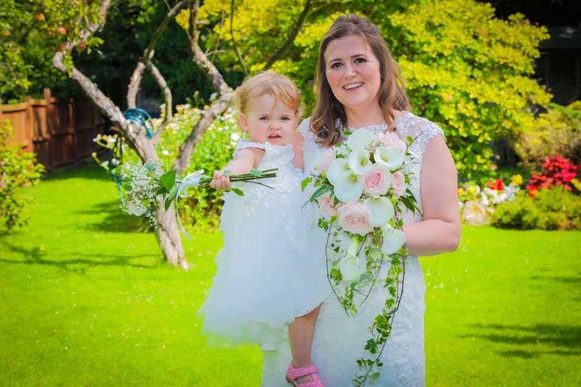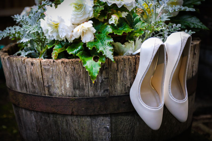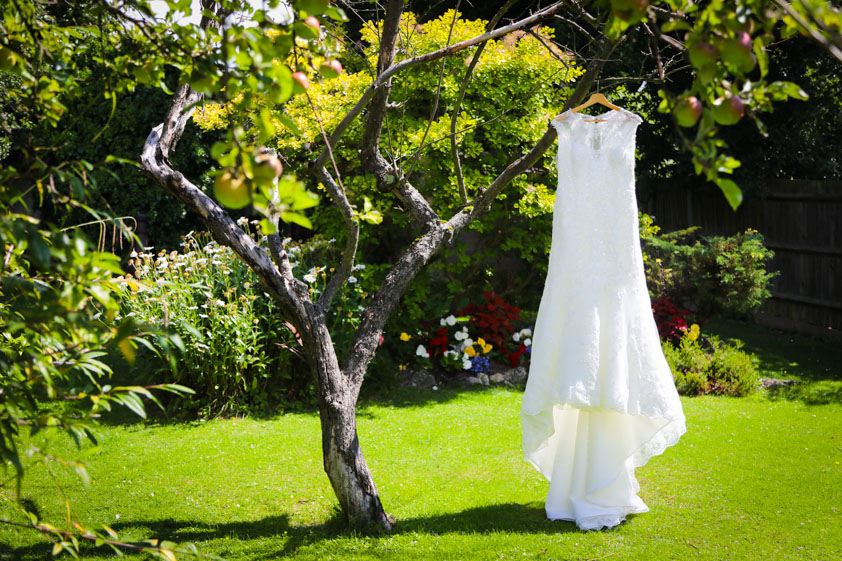 We started at Sian’s parents where all was calm with the bridal preps. The dress was hung and make up was being applied. The sun was shinning so I bagged some shots in the garden of the dress, the flowers and wedding jewellery.
